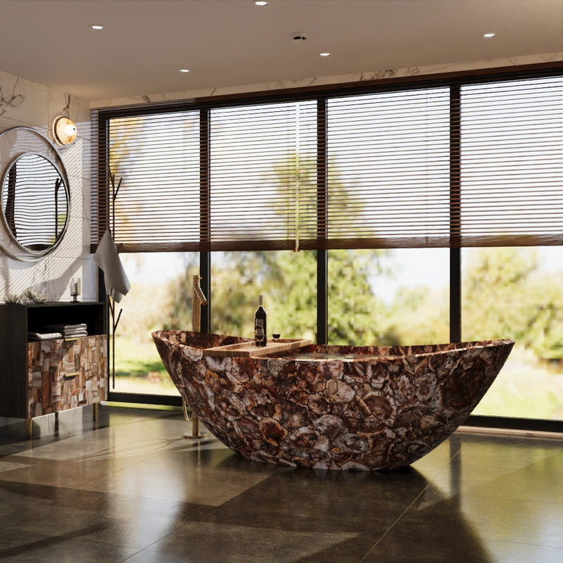 Handcrafted natural gemstones blend art and function, creating rare, beautiful furniture pieces.