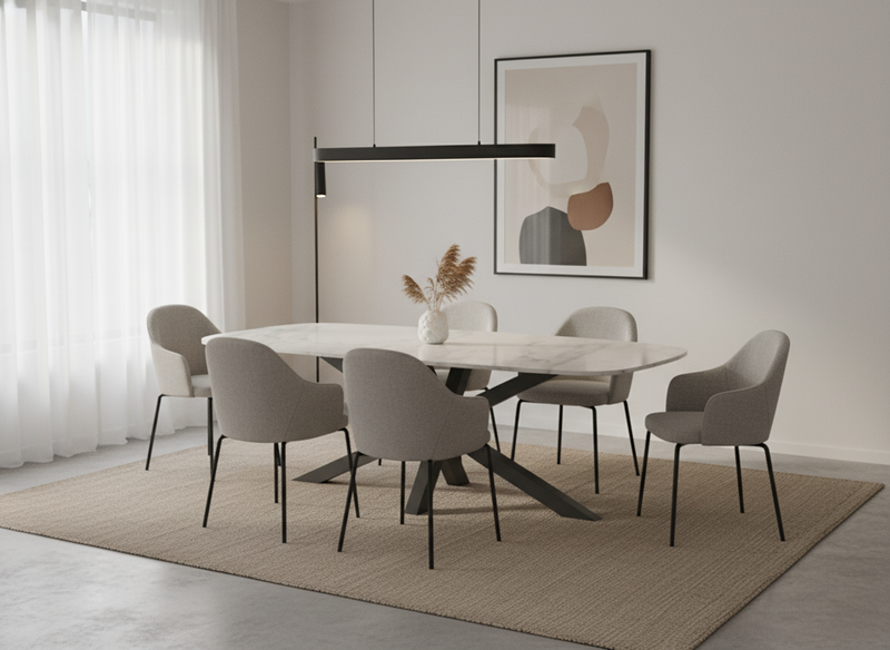 A white marble dining table instantly elevates your home décor, making it brighter, more spacious, and more inviting.