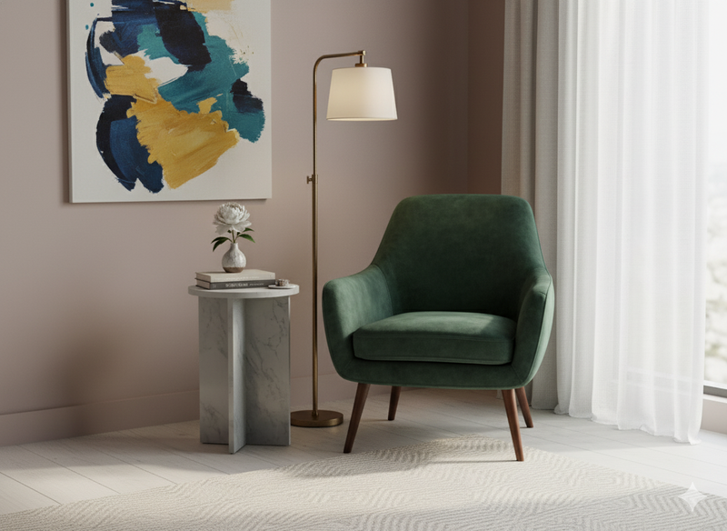 - Add natural wood chairs or accessories to create a warm and organic contrast.